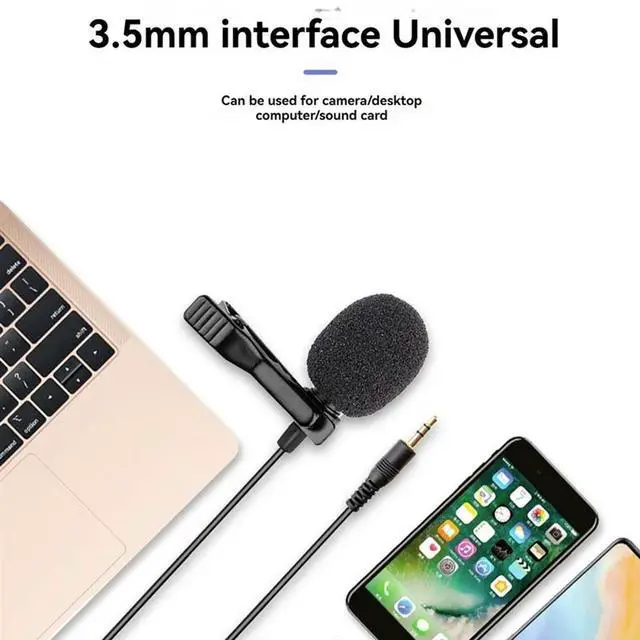 2Pcs Lavalier Lapel Microphones 3.5M m Connector Lavalier Microphone For Cameras/Desktop Computers/Sound Cards