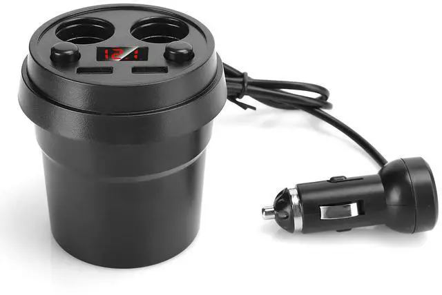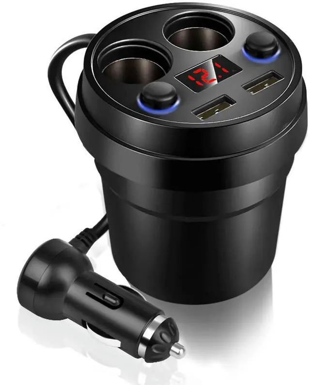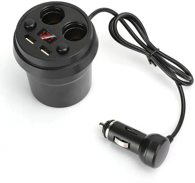 Cup Dual USB Car Charger with Wire Multifunction Fast Charging Cigarette Lighter USB Car Charger for Phone Tablet PC Car Travel