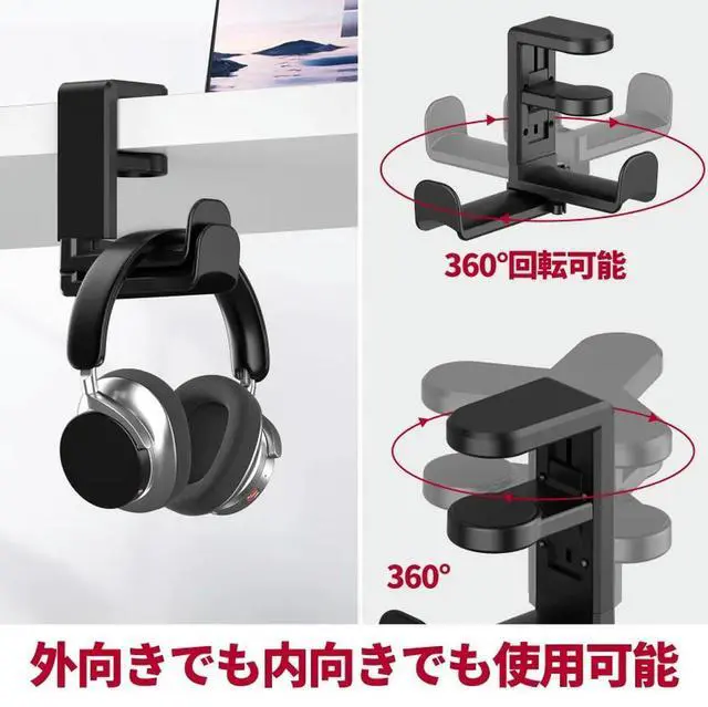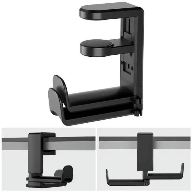 Dual Hook 360-Degree Rotation Universal Desktop Clamp Headphone Stand Rotatable Earphone Holder