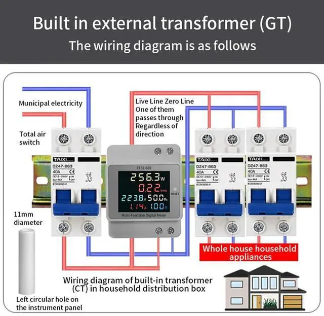 Electricity Meter ligent Electricity Meter 220V Voltage Current Power Frequency Factor Meter Rail Type Meters