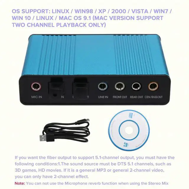 External 6 Channel USB 2.0 Sound Card SPDIF Optical Audio Controller For PC Laptop Desktop