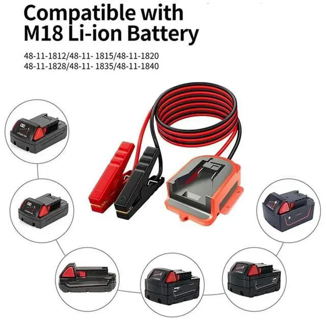 For 18V Li- Auto Emergency Jumper Cable Adapter Car Booster Jump Starter Cables