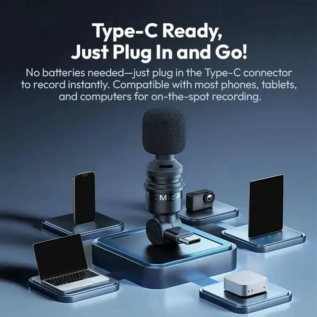 Ultra-Compact Type-C Mini Mic 360 Degree Omnidirectional Condenser Microphone For Vlog Video Recording Live Streaming