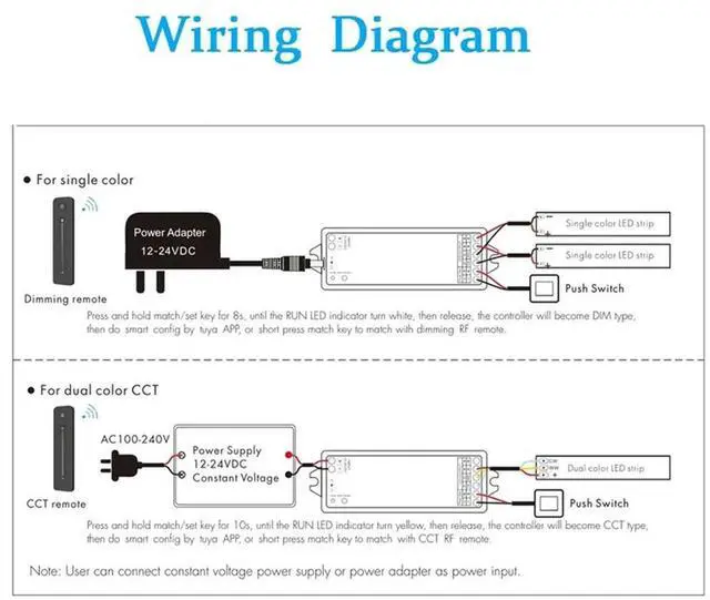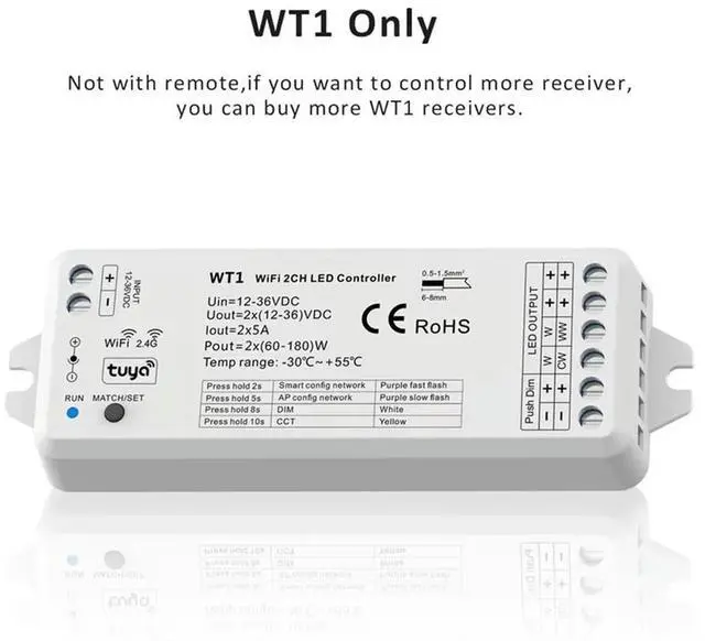 TUYA WT1 LED Dimmer Controller 2CH 12V 24V 36V CCT LED Strip Dimming Kit 2.4G Remote Control