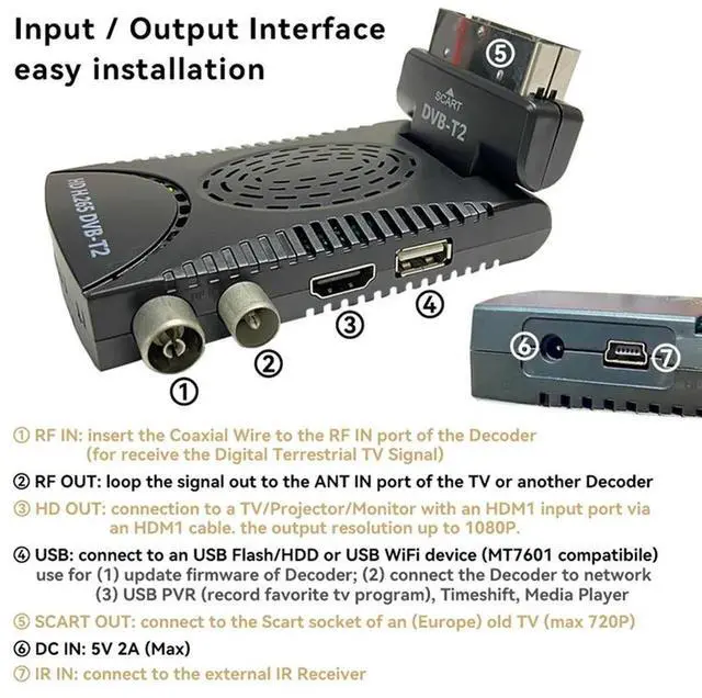 H. 265 HEVC Decoding Full HD DVB-T2 Digital Terrestrial TV Decoder Set Top Box With EPG EU Plug