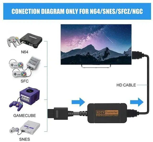 Retro Video Game Console Cable 1080P -Compatible Converter Adapter Plastic For N64 64/SNES/NGC/SFC Gamecube