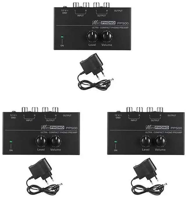 3X PP500 Ultra-Compact Phono Preamp Pre Amp Preamplifier With Level Volume Control EU Plug