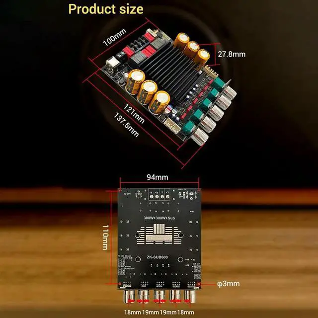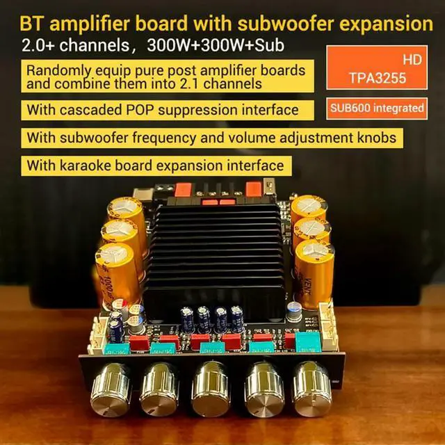 SUB600 Digital Amplifier Board TPA3255 2.0 Channel Integrated Bluetooth 300Wx2 Bass Note Tuning AMP