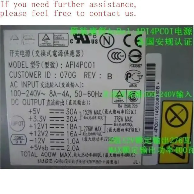 For Kangshu 400W Active Wide 100-240V Desktop Power Supply 400W Computer Power Supply, Model AP14PC01