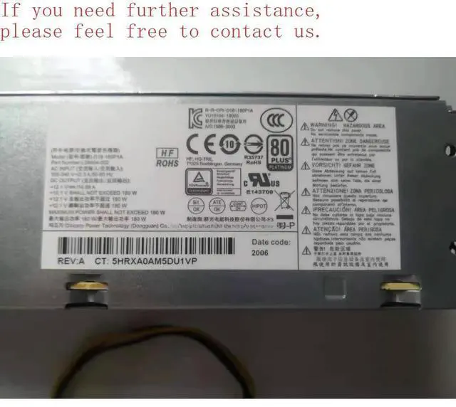 For 400 G5 G6 600 G3 G4 SFF Power Supply, PCC005, 901765-001, PA-1181-3HV
