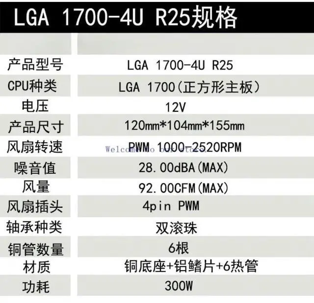 Leopard 4U LGA1700 Server CPU Heatsink 6 Heat Pipes Cooling Fan For 13th 14th Gen