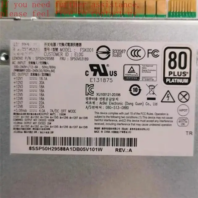 For P520 P620 P720 1000W Power Supply 5P50V03189 5P50V03173 5P50V03211 FSK001 DPS-1000AB-12 A 100% Tested
