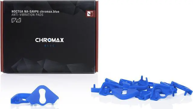 The NA-SAVP6 chromax.blue is a fan accessory set consisting of 16 blue NA-AVP6 anti-vibration pads for up to 2 compatible 200mm fans (see compatibility info). Made from extra-soft silicone, the NA-AVP6 pads minimise the transmission of minute vibrations while maintaining full compatibility with standard fan screws and most other mounting systems. At the same time, the chromax.blue edition is ideal for adding blue accents to Noctua's chromax line fans in order to colour-coordinate them with individual build themes.