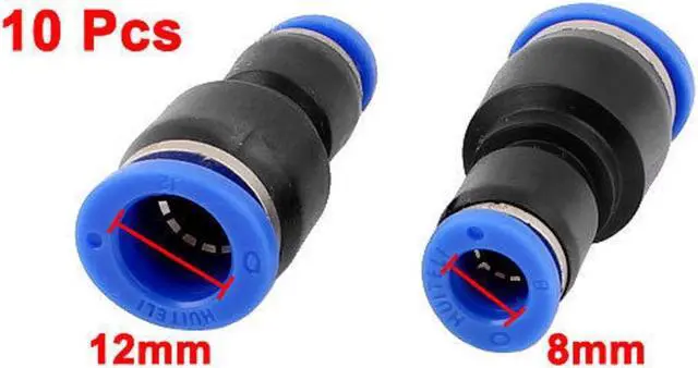 10 Pcs 12mm to 8mm Tube OD 2 Way Straight Push In Pneumatic Quick FittingsKd