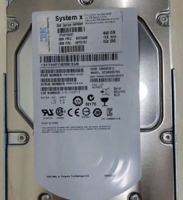 49Y6098 49Y6097 49Y6101 IBM SYSTEM X 450GB 15K RPM 6Gb/s 3.5 SAS Hard Drive