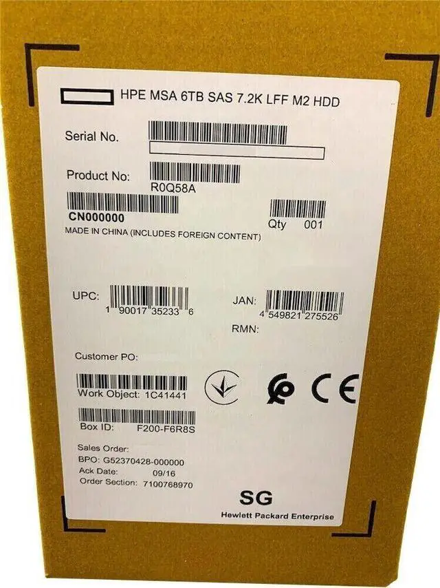 HPE MSA 6TB SAS 12G Midline 7.2K LFF (3.5in) M2 HDD R0Q58A P13248-001 Hard Drive