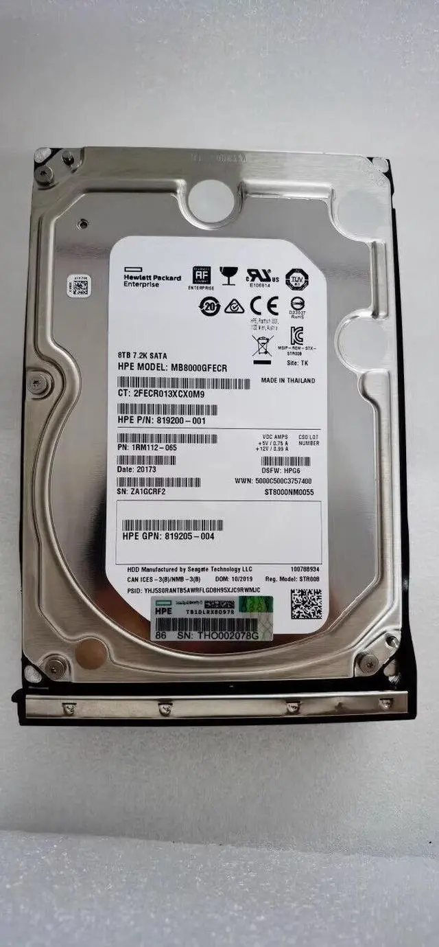 HPE 8TB SATA 6G 861594-B21 MIDLINE 7.2K 3.5 SC HELIUM 512E DS FIRMWAR 861609-001