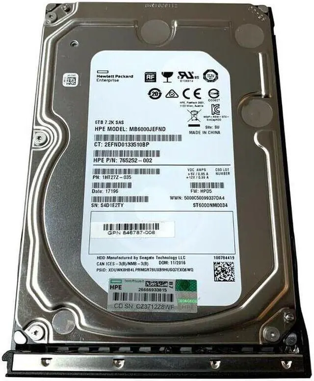 NEW 847036-001 HP 6TB SAS 7,200 RPM, 3.5in LFF 12 Gb/s Hard Drive 846998-B21