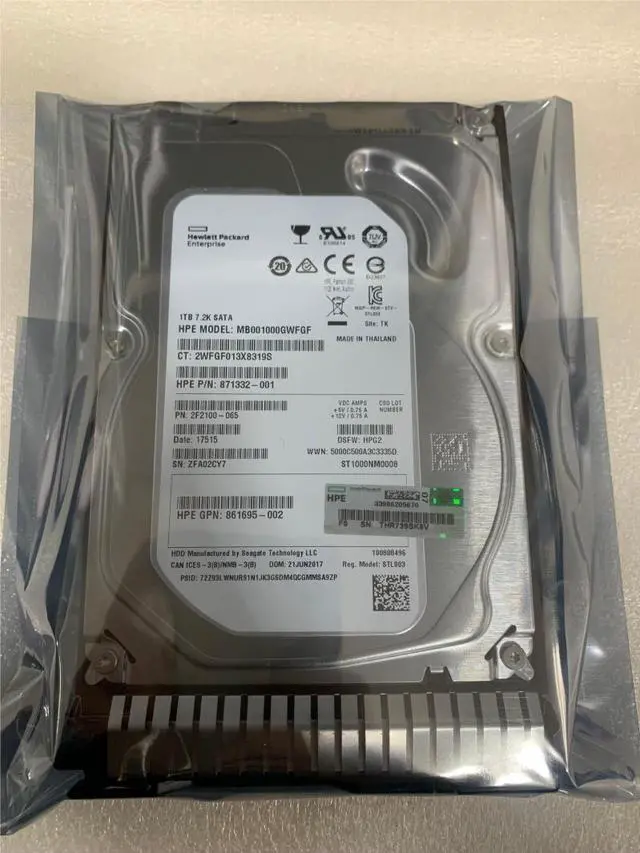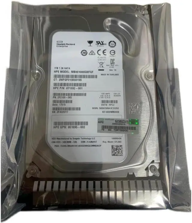 New 861691-B21 HP 1TB SATA 6G 3.5 LFF Midline 7.2K Smart Carrier HDD 862128-001