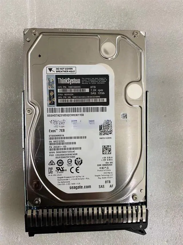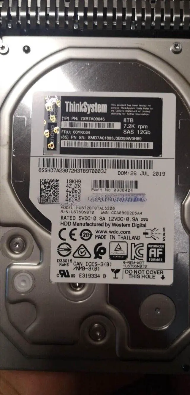 NEW For Lenovo 00YK034 7XB7A00045 3.5 inch 8TB 7.2K SAS 12G SR550 SR650 Hard Drive