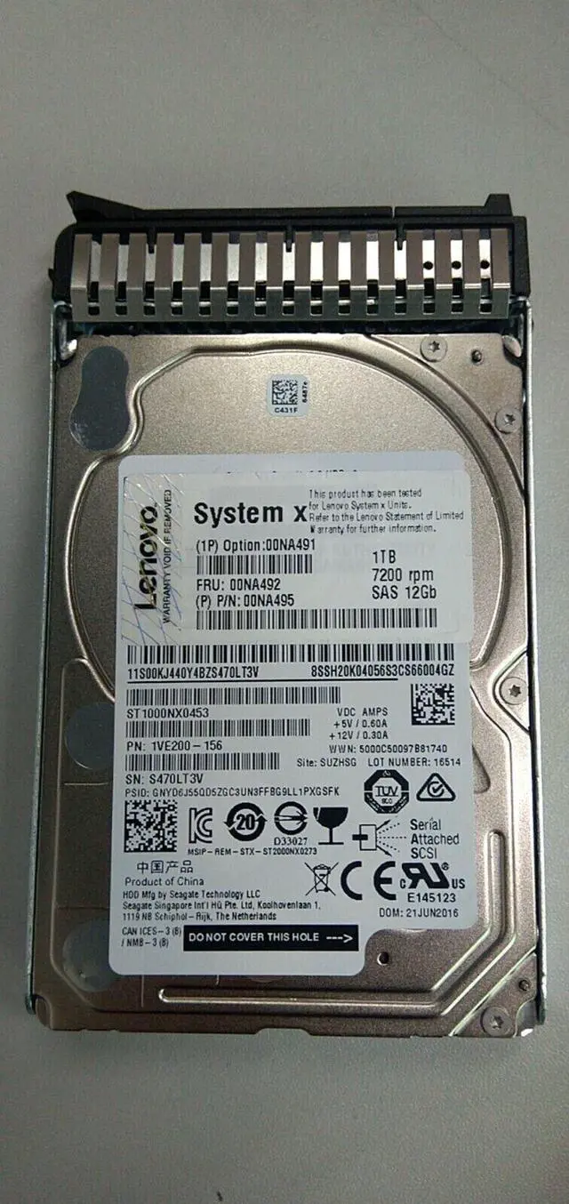 For New Lenovo 00NA491 00NA492 1TB 7.2K 12Gbps NL SAS 2.5" G3HS HARD DRIVE