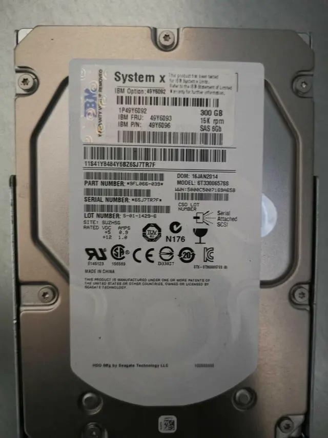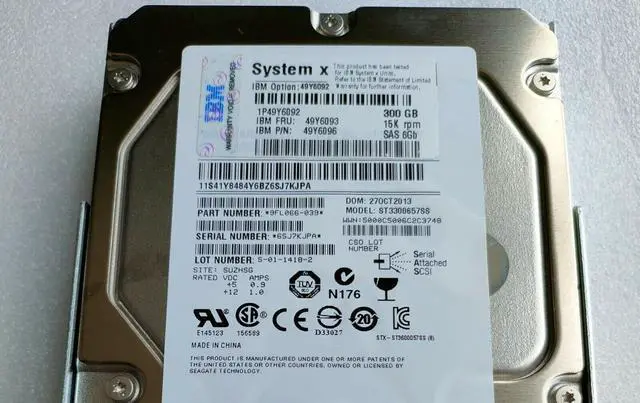 49Y6093 49Y6092 49Y6096 300GB 15K 6G 3.5" G2HS LFF SAS X3650 M4 HARD DRIVE