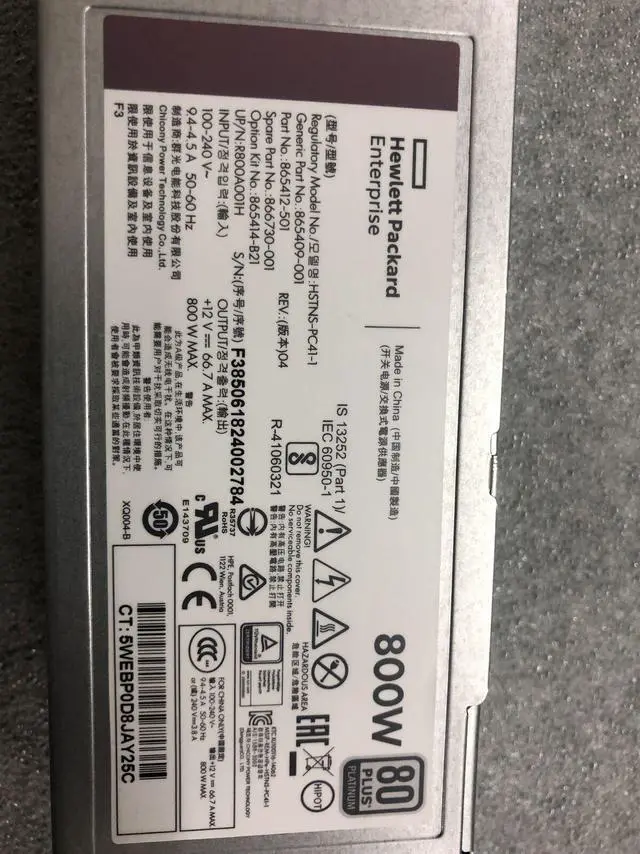 For HPE 800W Flex Slot Platinum Hot Plug Low Halogen Power Supply Kit 800W 240 V AC