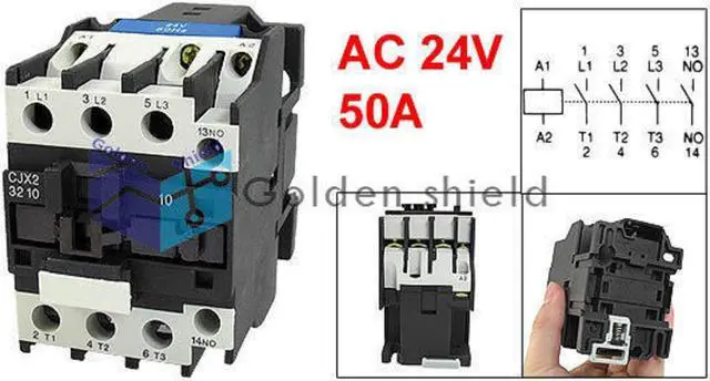 CJX2-3210 3 Poles 3P NO DIN Rail AC Contactor Coil 660V 50A 15KW 24VKd