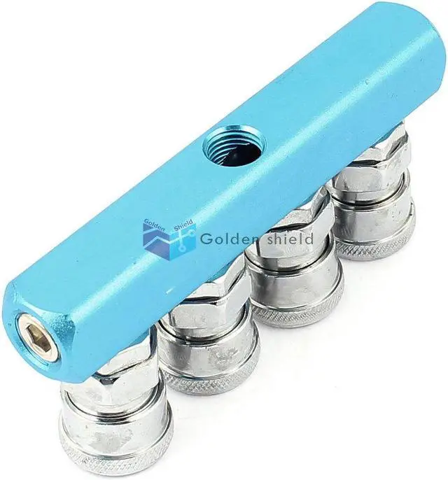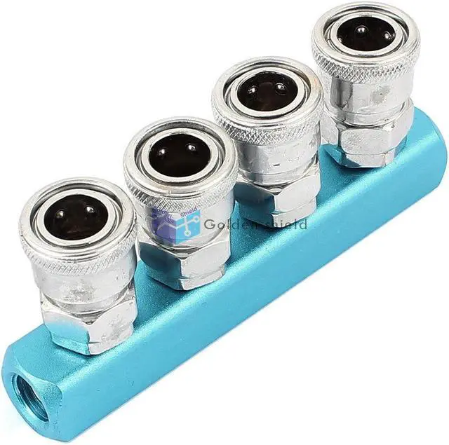 Metal Air Hose 4 Way Pass Connecting Quick Coupler Socket Blue Silver ToneKd