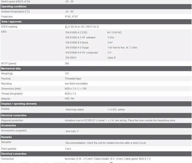 IFM KI000A Capacitive Sensor 30...250 AC / 20...250 DC New KD