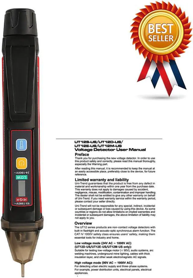 UNI-T UT12E Non-contact AC Voltage Detector Smart Test Pencil 24V-1000V Kd
