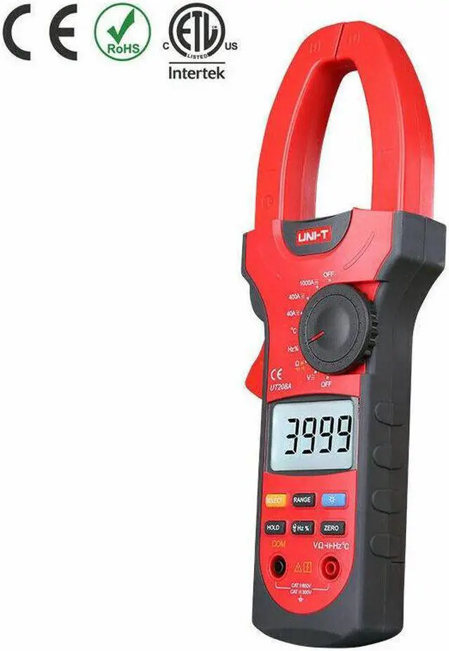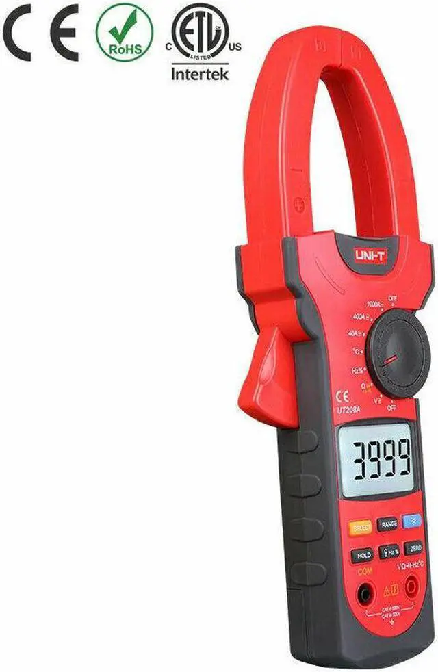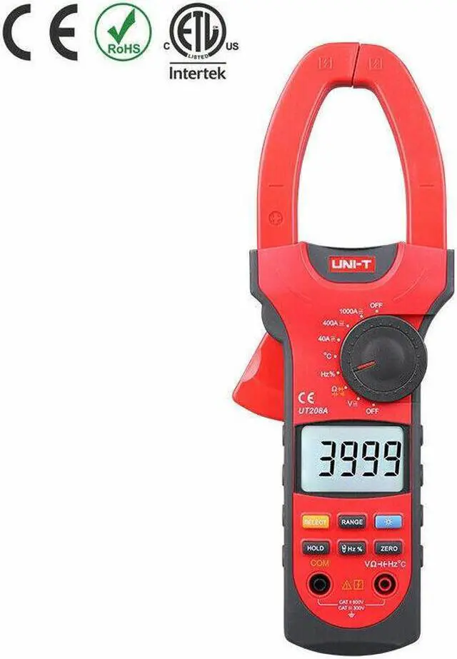 UNI-T UT208A AC DC Clamp Multimeter Auto Range Volt Amp Ohm Cap Hz Temp TesteKd