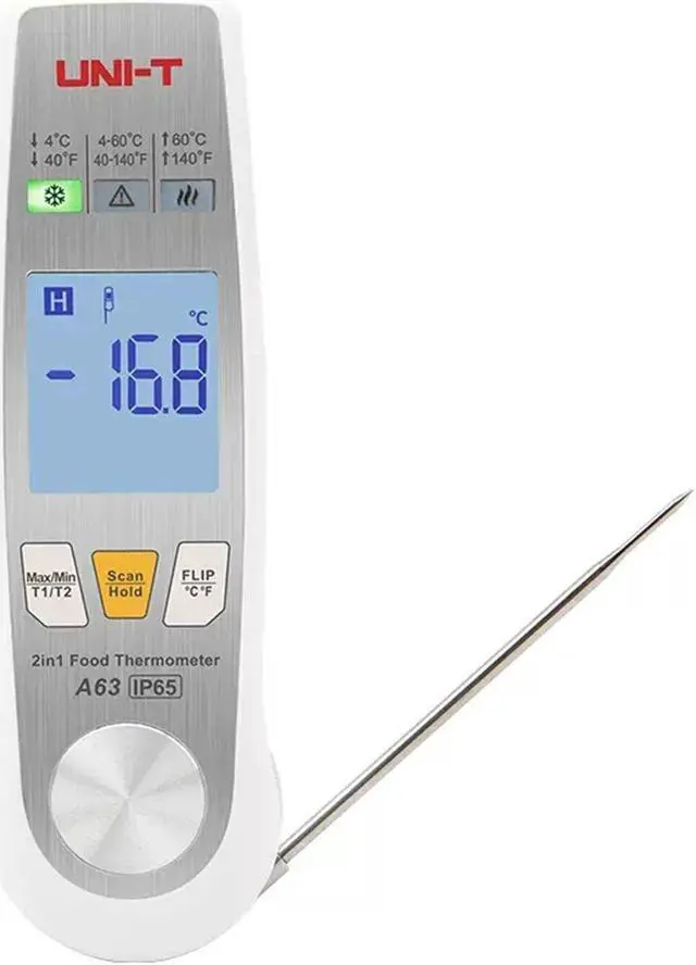 UNI-T A63 2-in-1 Food Thermometer Non-Contact Infrared Temperature Meter Kd