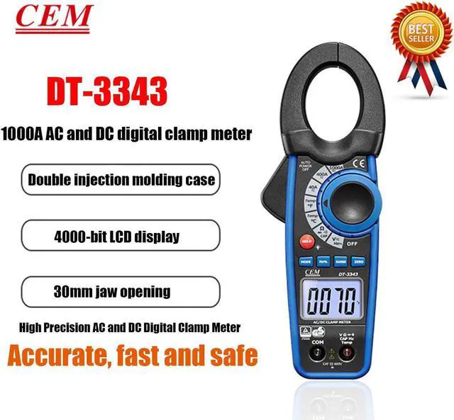 CEM DT-3343 1000A AC/DC Digital Clamp Meters Data Hold Function Auto Power OffK