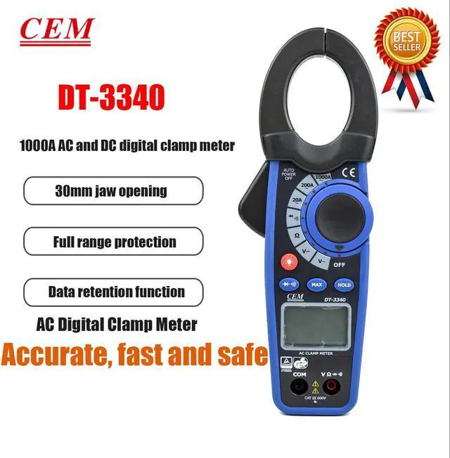 CEM DT-3340 1000A AC/DC Digital Clamp Meters Data Hold Function Auto Power OffK