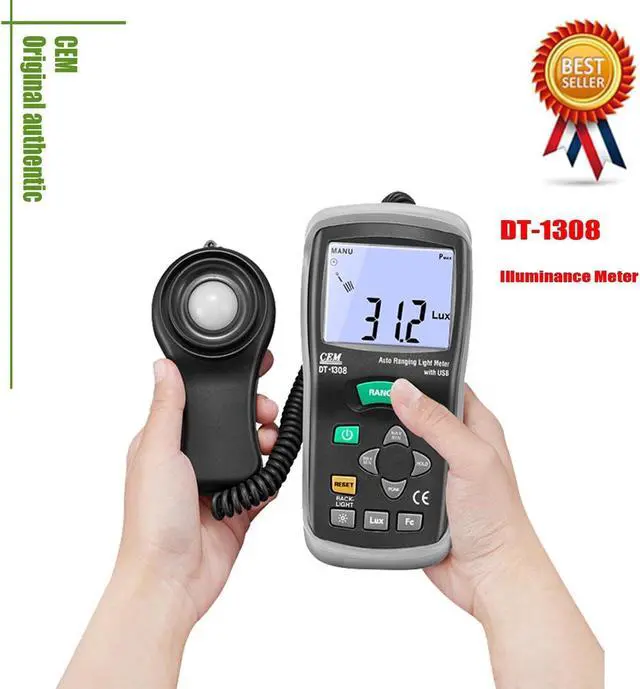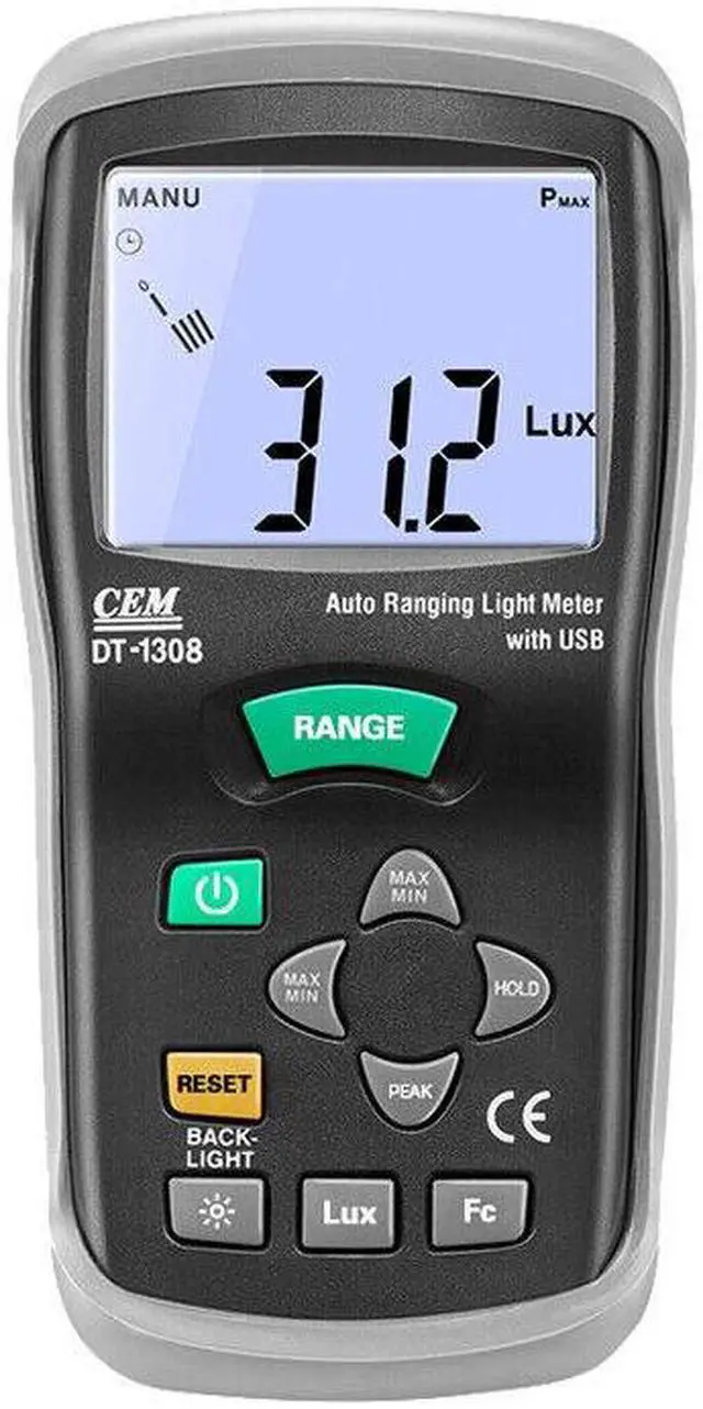 CEM DT-1308 Digital LCD Light Meter Foot-candle Lux Meter Tester 400K KD
