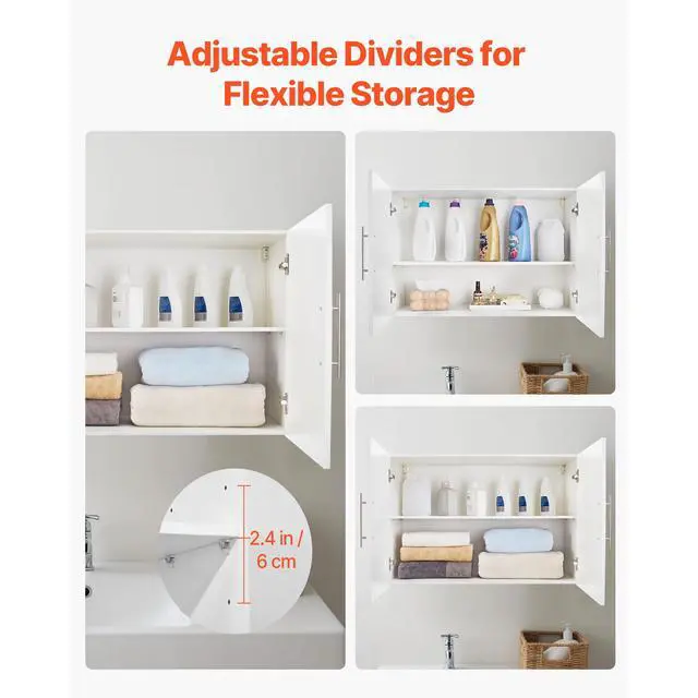Adjustable Shelves: 3 Settings, 2.4 in / 6 cm Each