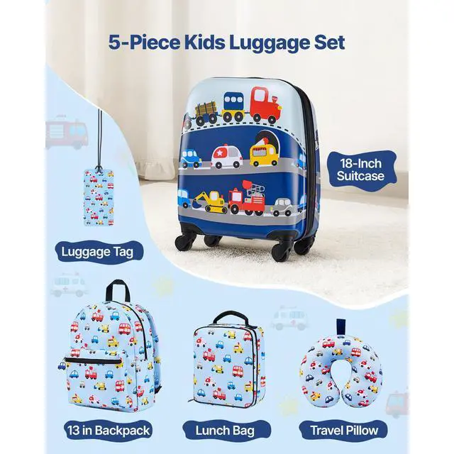 Set Count: 5 pieces (Suitcase + Backpack + Neck Pillow + Lunch Bag + Luggage Tag)
