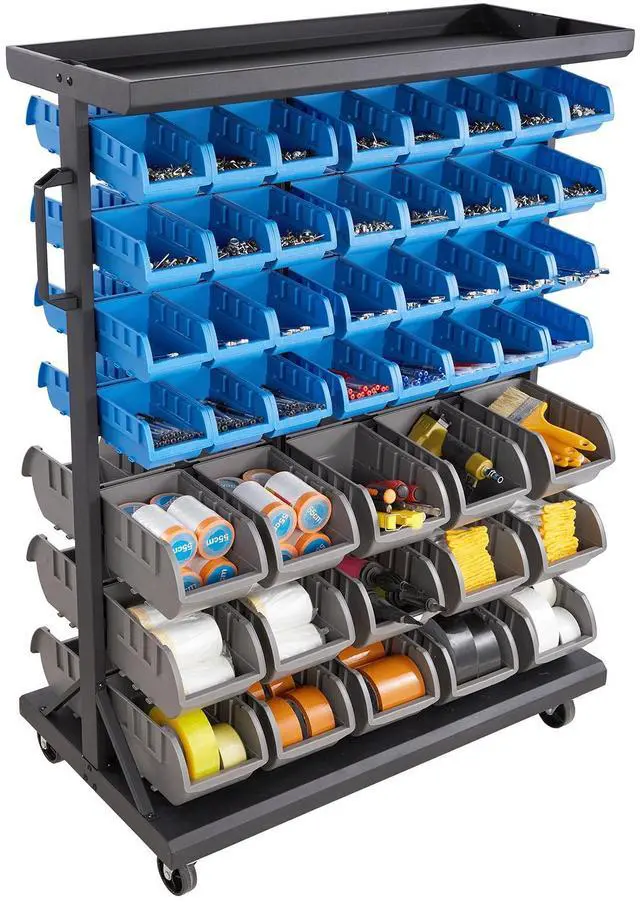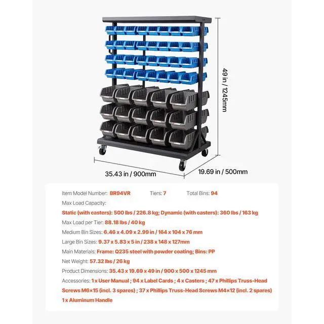 Frame: Q235 steel with powder coating; Bins: PP