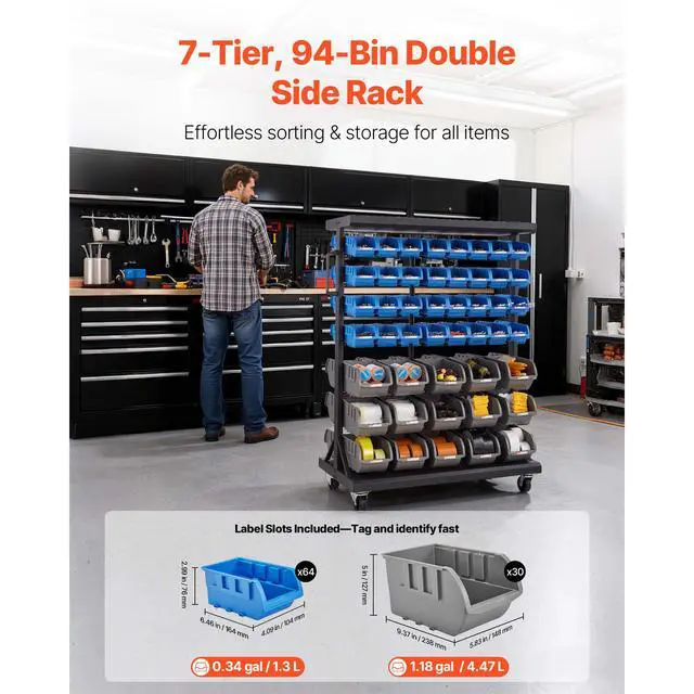 Large Bin Sizes: 9.37 x 5.83 x 5 in / 238 x 148 x 127mm