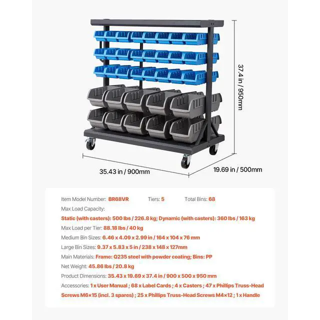 Large Bin Sizes: 9.37 x 5.83 x 5 in / 238 x 148 x 127mm