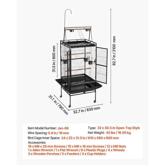 Bird Cage Inner Space: 24 x 22 x 31.5 in/610 x 560 x 800 mm