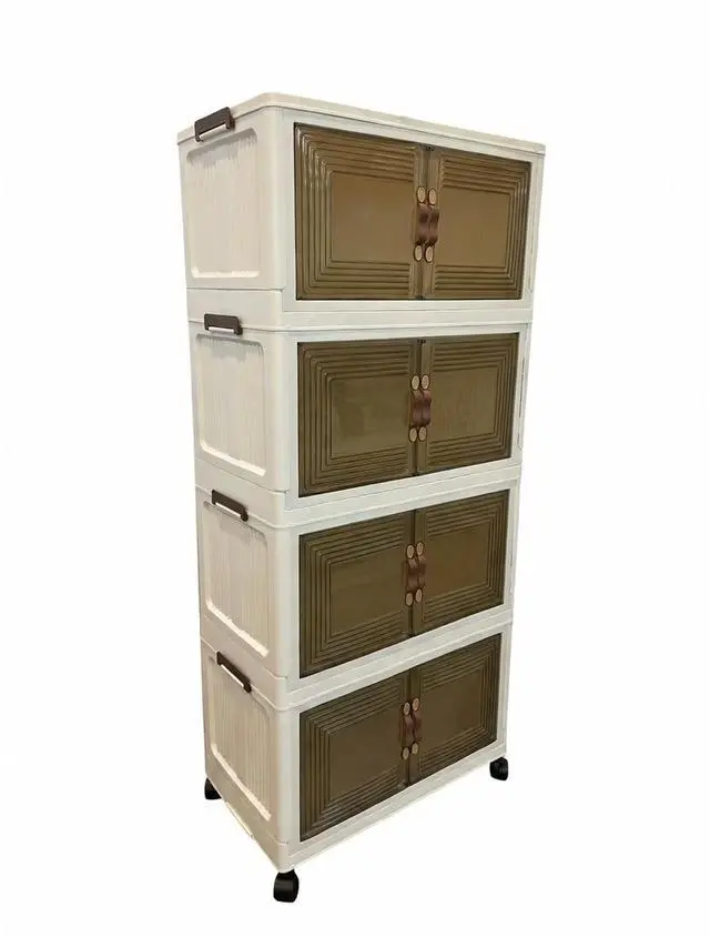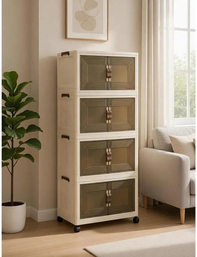 Upgrade your home organization with the 4-Tier Folding Storage Cabinet with Transparent Doors & Wheels. This space-saving vertical organizer is designed to declutter rooms while keeping items visible, protected, and easily accessible.