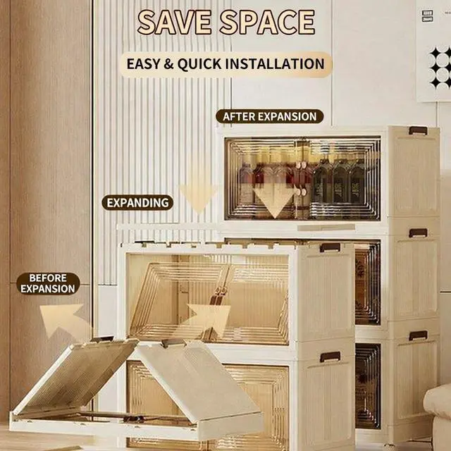 Its foldable, tool-free design allows fast assembly in minutes, and the stackable modular structure provides flexible storage that grows with your needs. Built-in smooth-rolling wheels make it simple to move from bedroom to living room, office, or kitchen, giving your storage true mobility.