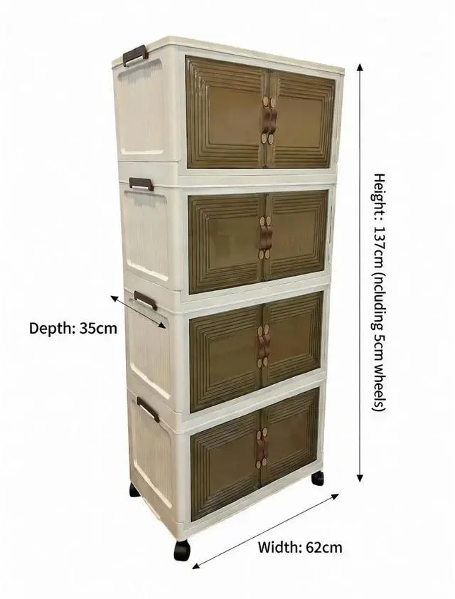 The transparent double doors offer instant visibility and dust protection, keeping belongings neat and your space looking modern and clean. Constructed from durable, easy-clean plastic, this cabinet is perfect for bedrooms, living rooms, offices, kitchens, dorms, or apartments, helping you maximize space, reduce clutter, and enjoy an organized, stress-free home.