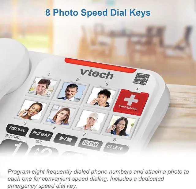 Photo dial - Never forget whose number is whose. Program eight frequently dialed phone numbers and attach a photo to each one for convenient speed dialing. Includes a dedicated emergency speed dial key.