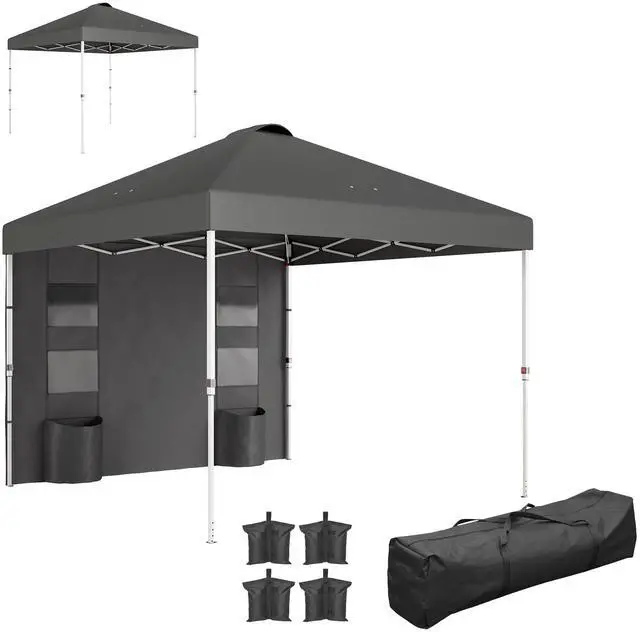 • 10x 10 ft party tent w/ Sidewall with Height Adjustable Instant Sun Shelter w/ Storage Pockets,Dark Gray