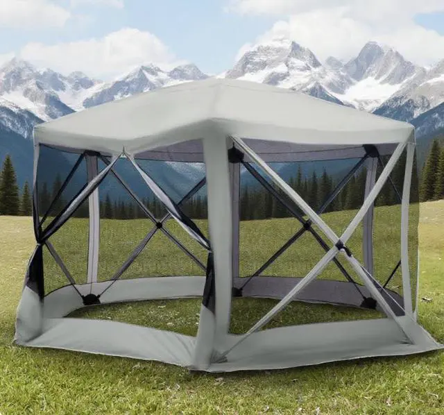 SPACIOUS INTERIOR LIVING AREA: This pop up screen room features a spacious shaded area and can provide ample interior shelter that comfortably fits 6-8 people. Mesh netted side walls ensure proper airflow and ventilation.