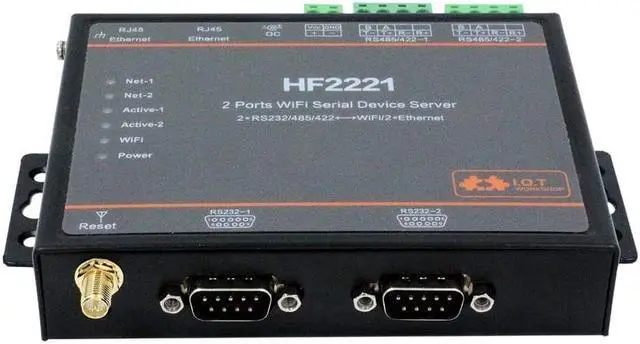 Support 2 channel RS232/RS422/RS485 to Ethernet/Wi-Fi Conversion, Serial Speed Upto 230400 bps.