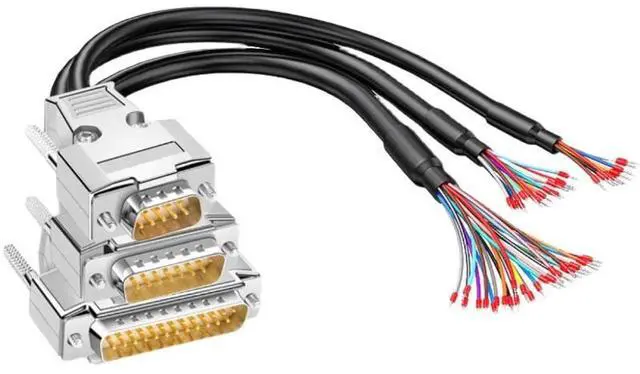 The DB9, DB15, and DB25 refer to the size of the connector on the cable. These connectors are commonly used to connect devices such as computers, PLCs (programmable logic controllers), and other industrial equipment. The connectors have a specific number of pins, or conductors, that are used to transmit data and power between the devices.